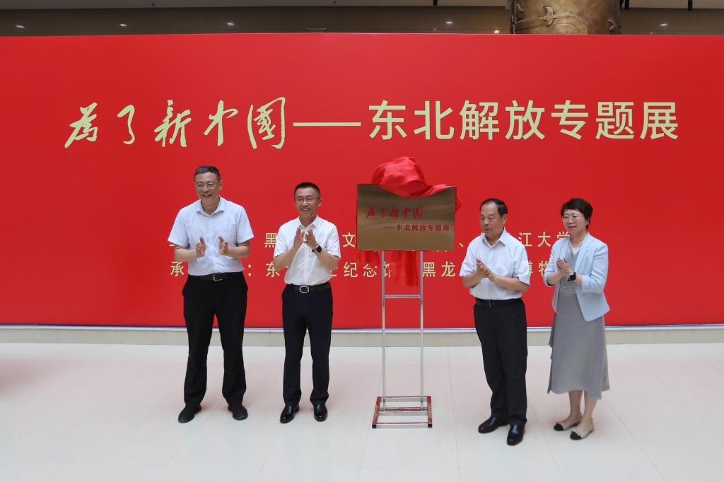 揭幕仪式上,sunbet申搏官方网站原党委书记、校长、中共黑龙江省委原副书记、省人大常委会原副主任、全国人大教科文卫委员会委员刘东辉与何大为、迟宝旭、王敬波共同为展览揭幕。