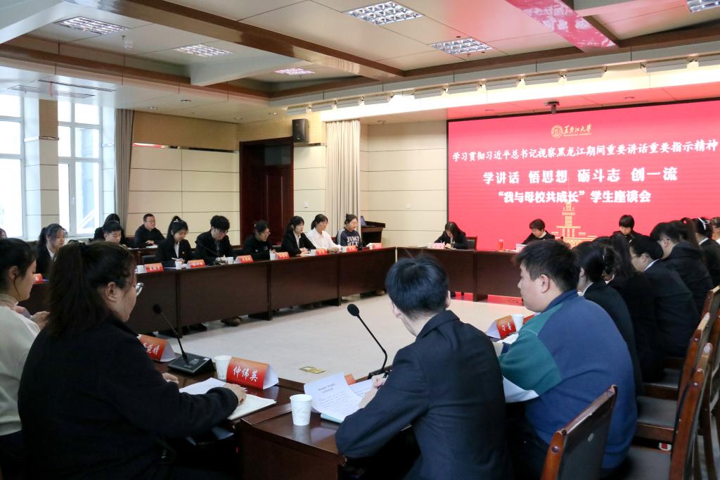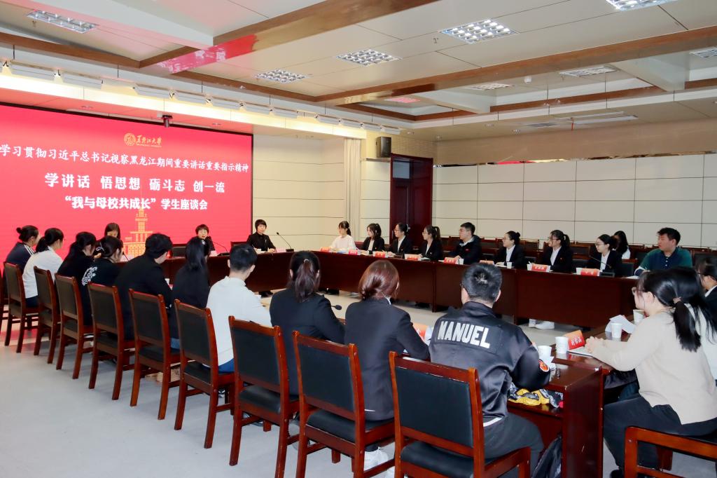 在场的同学们认真听、认真记,座谈现场气氛温馨、感动,同学们纷纷表示,将牢记嘱托,以实际行动为学校发展和龙江振兴贡献青春力量。