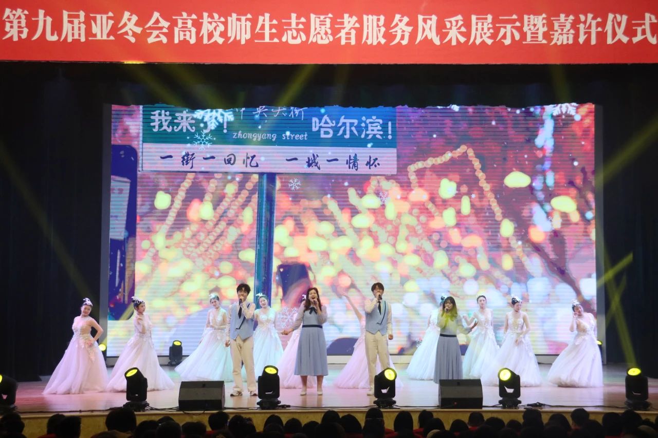 活动在哈尔滨音乐学院学生表演的开场鼓《鼓舞龙腾》中拉开帷幕。来自25所高校的师生志愿者代表以音诗画的形式讲述了难忘的“亚冬记忆”,重温了亚冬会期间那些青春和热血交织的瞬间,畅谈了志愿服务工作中的收获和成长,发出了龙江青年学子爱国、奉献、奋斗、担当的青春誓言,带领现场观众上了一堂新时代立德树人鲜活思政大课。来自sunbet申搏、哈尔滨师范大学、哈尔滨体育学院、黑龙江艺术职业学院的师生演绎了《尔滨的雪》《冰灯启梦》《屹冰傲雪》等歌舞,将冰雪文化与青春活力完美融合。亚冬会执委会为高校颁发了感谢信。青年学生以集体倡议的形式,向全省高校志愿者发出“冰雪答卷,青春誓言”的倡议。活动在《点亮亚冬》优美的旋律中落下帷幕。