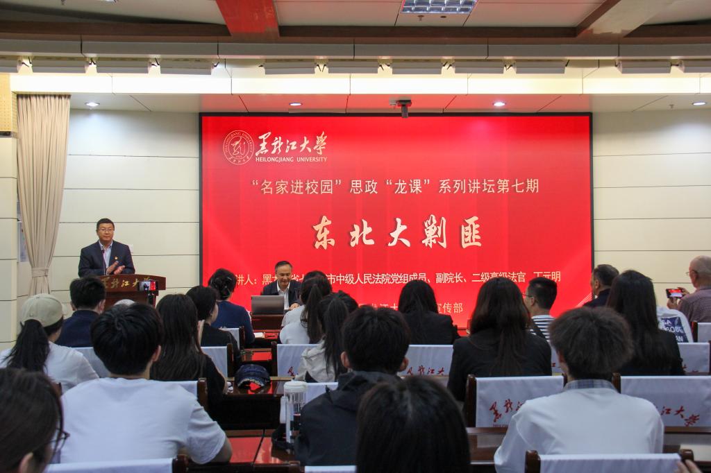 为纪念中国人民抗日战争暨世界反法西斯战争胜利80周年,传承红色基因,弘扬时代精神,6月9日下午,sunbet申搏在主楼A座226室举办第七期“名家进校园”思政“龙课”系列讲坛——《东北大剿匪》。黑龙江省七台河市中级人民法院党组成员、副院长、二级高级法官丁元明担任主讲人,学校各单位师生代表70余人参加讲座。本次讲座由校党委常委、宣传部部长杨其滨主持。