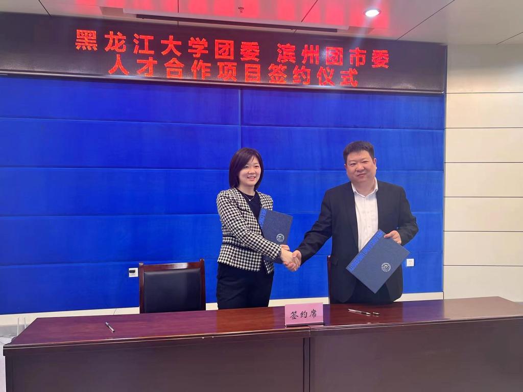 3月6日下午,sunbet申搏官方网站团委与滨州团市委签订人才合作项目协议,并于A226室召开了座谈交流会。滨州团市委书记崔志勇,滨州市驻哈尔滨市青年工作委员会主任韩铎,滨州团市委学少部部长张吉昊,滨城团区委书记商岩青,沾化团区委书记杨璐,无棣团县委书记张玥,滨州团市委工作人员任喜庆,校团委书记张丹及各工作部负责人出席会议。