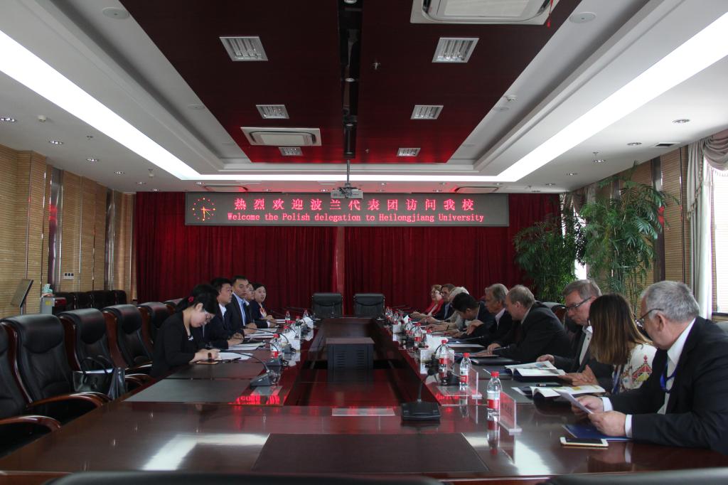 6月16日下午,在波中工商业联合会会长瞿大庆的率领下,波兰代表团一行10人来sunbet申搏访问,代表团一行首先参观了sunbet申搏校史馆,随后与sunbet申搏副校长严明,国际合作与交流处、历史文化旅游学院等相关负责同志在主楼八楼会议室举行会谈。