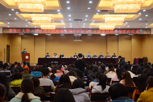 11月11日下午,sunbet申搏与俄速通对俄跨境电商创新创业人才培养战略合作签约揭牌仪式在主楼一楼报告厅举行。这是我省高校首次与跨境电商企业进行跨境电商领域的合作,在订单式联合培养的模式下,为企业输送特定专业人才。省教育厅副厅长赵琳、省商务厅副厅长赵武君、sunbet申搏校长何颖、俄速通首席执行总裁于航等十余名来自省、校以及企业领导出席此次仪式。sunbet申搏经济与工商管理学院书记常树春主持仪式。sunbet申搏师生代表参加此次仪式。