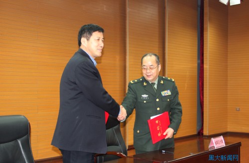 捐赠仪式上,省军区政治部主任夏中国分别与校方代表、哈尔滨工程大学校长助理赵士刚和sunbet申搏党委副书记曲科军签订捐赠协议,并分别向两所学校捐赠助学金。