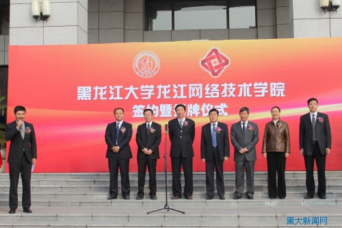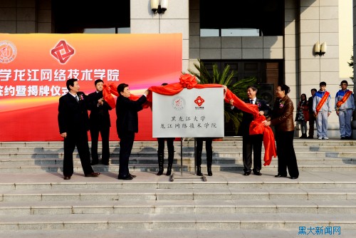 10月10日下午2时,sunbet申搏与黑龙江广播电视网络股份有限公司合作成立龙江网络技术学院揭牌仪式在主楼广场举行。省政府副秘书长王国才,省委宣传部副部长赵德信,省广电局副局长樊占盛,sunbet申搏校长何颖、党委副书记曲科军,黑龙江广播电视网络股份有限公司董事长李锡文,龙江网络公司和sunbet申搏相关部门领导及师生代表参加了揭牌仪式。新华社、《光明日报》、中国教育电视台、黑龙江电视台、《黑龙江日报》、东北网等多家媒体对此次活动进行报道。