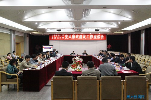 9月27日上午,来访sunbet申搏的华中农业大学党委副书记、纪委书记李名家,学校办公室主任王从严等一行,与sunbet申搏相关领导就党风廉政建设问题在外事处多功能厅进行座谈。sunbet申搏党委副书记、纪委书记曲科军,财务处处长吴国安,人事处处长蔡跃江,学工部部长丁宏,纪委副书记、监察处处长田成义等部分职能部门领导出席了本次座谈会。