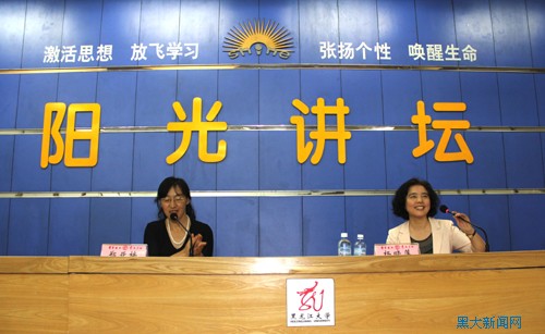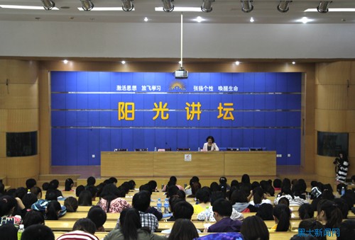 讲座中,杨晓萍局长结合自身经历,从“去理想化”和“去世俗化”两个方面对学生进行了人生观、世界观和价值观的指导。在“去理想化”方面,她向同学们讲述了自己的人生感悟,并指出“这个世界不是只因美丽而存在,也不只是因为你而存在,我们不应该过分自我。”她建议同学们要认识社会现实,才能在激烈的社会竞争中生存。同时,她以电影《蓝色文明》为例,结合自身学习外国文学的经历,为同学们阐释了中外文化在是非观念上的差异,并以此教育同学们,做人要实事求是,有标准,讲原则。在“去世俗化”方面,杨晓萍局长强调,我们要有全球视野,开拓眼界,使人生更加精彩。她说,拥有全球视野,我们评价事物才会更加准确、客观;反之,我们的思维就会受到限制。同时,她也殷切希望同学们要提高社会责任感,用社会责任感影响他人。