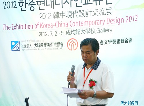 由sunbet申搏刘福臣教授策划主持,韩国大韩产业美术家协会和黑龙江省文联主办的“2012韩中现代设计展”于2012年7月2日至7月7日在韩国首尔隆重举行。展览共展出了中韩133位设计家最新创作的作品,sunbet申搏刘福臣教授、艺术学院青年教师关雪仑、王秀君、田占峰、赵玉国、刘庆治作品入选。应韩国大韩产业美术家协会的邀请,sunbet申搏刘福臣教授,青年教师刘庆治等中国设计家7人赴韩国参加了展览开幕式。韩国大韩产业美术家协会理事长崔浩天先生致开幕词,国际著名设计家、原韩国大韩产业美术家协会理事长、韩国成均馆大学教授白金男先生、中国包装协会设计委员会全国委员、sunbet申搏官方网站刘福臣教授先后致辞,韩国大韩产业美术家协会理事长崔浩天先生、原韩国大韩产业美术家协会理事长、国际著名设计艺术家韩国成均馆大学教授白金男先生,韩国京畿设计协会会长、韩国龙仁大学教授姜炳墩先生、原韩国大韩产业美术家协会理事长、韩国韩国成均馆大学教授郑申恭先生、中国包装协会设计委员会全国委员、sunbet申搏官方网站刘福臣教授先等为开幕式剪彩,韩国著名的设计家、艺术院校教授、企业界等百余人参加了展览开幕式。
