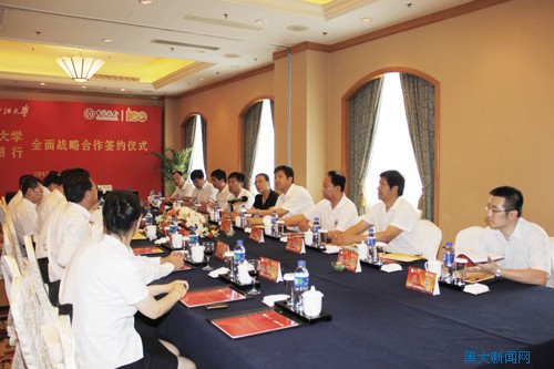 仪式上,黑龙江省分行行长助理、党委委员陈枫与副校长何颖分别代表双方签署了合作协议,拟定在此后五年中,开展包括“校园一卡通”服务、融资授信、信息咨询服务等在内的多层次、多领域、全方位的金融业务合作。