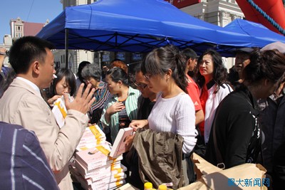 8月29日,“sunbet申搏官方网站出版社成立两周年图书展销暨叶文现场签字售书活动”在哈尔滨索菲亚教堂广场举行。