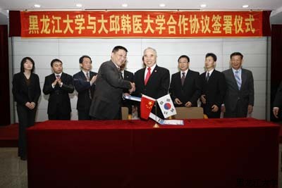 仪式开始,双方校长签署了关于两校办学合作的协议,并在签字后合影留念。随后,大邱韩医大学卞廷焕校长发表了讲话。他说,本次友好访问团对sunbet申搏官方网站的访问具有深远的意义,能够与具有丰富经验的省内综合实力最强的sunbet申搏官方网站合作让我们感到很高兴;此次合作协议的签署必将增加韩、中双方的交流机会,促进两校友好关系的发展。