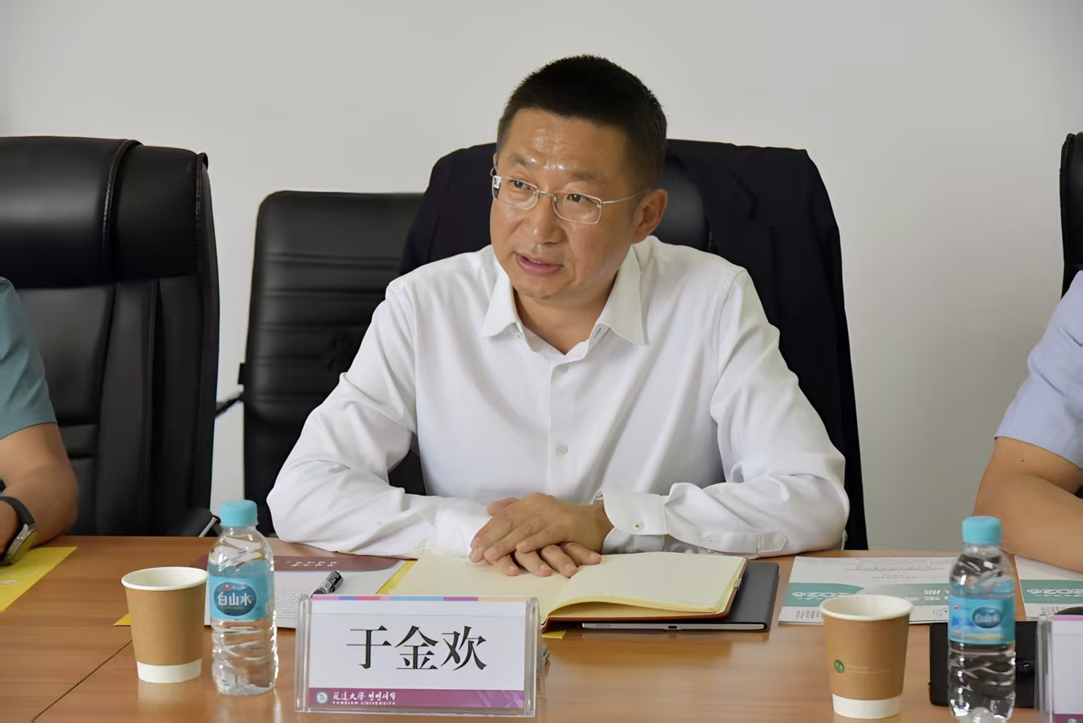 于金欢对调研组一行的到来表示热烈欢迎,并介绍了延边大学办学情况和珲春校区建设情况。他表示,珲春校区的建立,既是延边大学与国家图们江区域开发开放、“一带一路”倡议、东北全面振兴等战略的紧密对接,也是对高教强省精神的深入贯彻,为区域经济建设和社会发展服务,为珲春市开发开放提供人才、智力和科技的有力支持。
