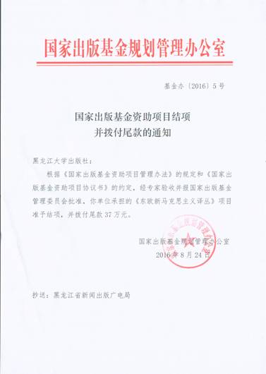 通过对《东欧新马克思主义译丛》项目内容质量、财务管理以及制度管理等方面工作的分组检查,国家出版基金资助项目验收专家组对《东欧新马克思主义译丛》项目的设立、管理以及成果给予了充分肯定,最终确定该项目通过此次验收,结项成绩为优秀。黑龙江省新闻出版广电局出版管理处相关领导也参加了此次验收会。