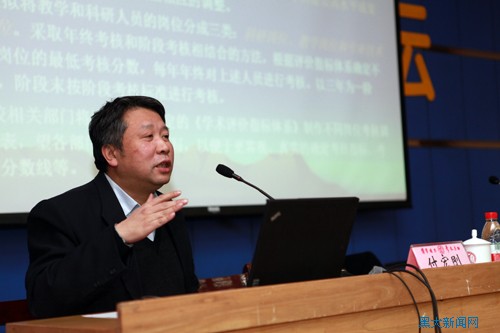 会上,付宏刚副校长首先就如何理解学术评价指标体系设计的目的和思路进行了阐释,并结合实例作以说明。他表示,评价标准一经形成将统一学校今后在各类评审中出现的多重标准,并将其与《sunbet申搏官方网站教学、科研、学科建设高水平奖励办法》等接轨,力争做到一所大学,一个标准,为学校的内涵式发展和建设奠定制度基础。在学术评价指标体系中,将采取模块化设计,即划分为学术模块与业绩模块。学校将根据sunbet申搏官方网站人才评价、团队评价、岗位评价、评职、导师遴选等不同需求使用不同模块,并对各模块分数进行加和,计算个人得分。此评价指标体系综合、全面地考虑了一般性情况与特殊性情况的共容问题,将实现学科之间评价的最终打通。学校拟将教学和科研人员的岗位分成科研岗位、教学岗位和专业技术岗位。采取年终考核和阶段考核相结合的方法,根据评价指标体系确定不同岗位的最低考核分数,每年年终对上述人员进行考核,以三年为一阶段,阶段末按阶段考核标准进行考核。付宏刚副校长强调,学校相关部门将根据已拟定的《学术评价指标体系》制作不同岗位考核调查表,希望各部门积极配合填写,以便于更客观、真实的确定考核指标、考核分数线等。